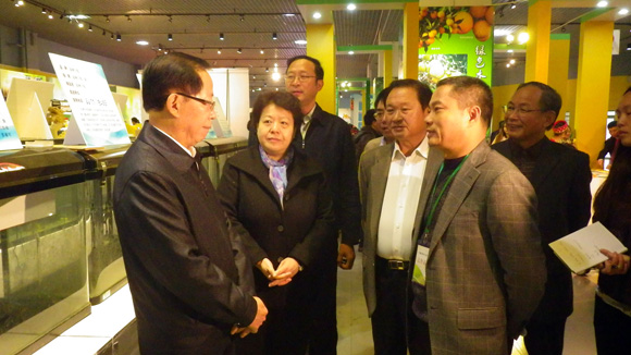 自治区领导听取张秋明汇报龟鳖养殖情况(右一为广西区党委副书记危朝安、右二为区政府副主席李康)