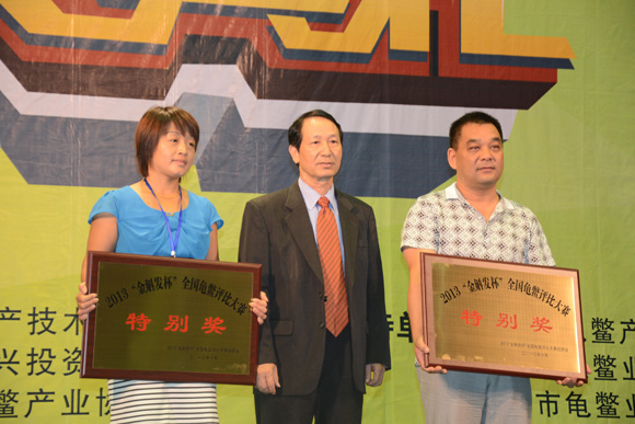 广西龟鳖主管部门高度重视龟鳖产业的发展(图为区水产畜牧兽医局局长梁雨祥为2013年全国龟鳖大赛获奖单位颁奖)